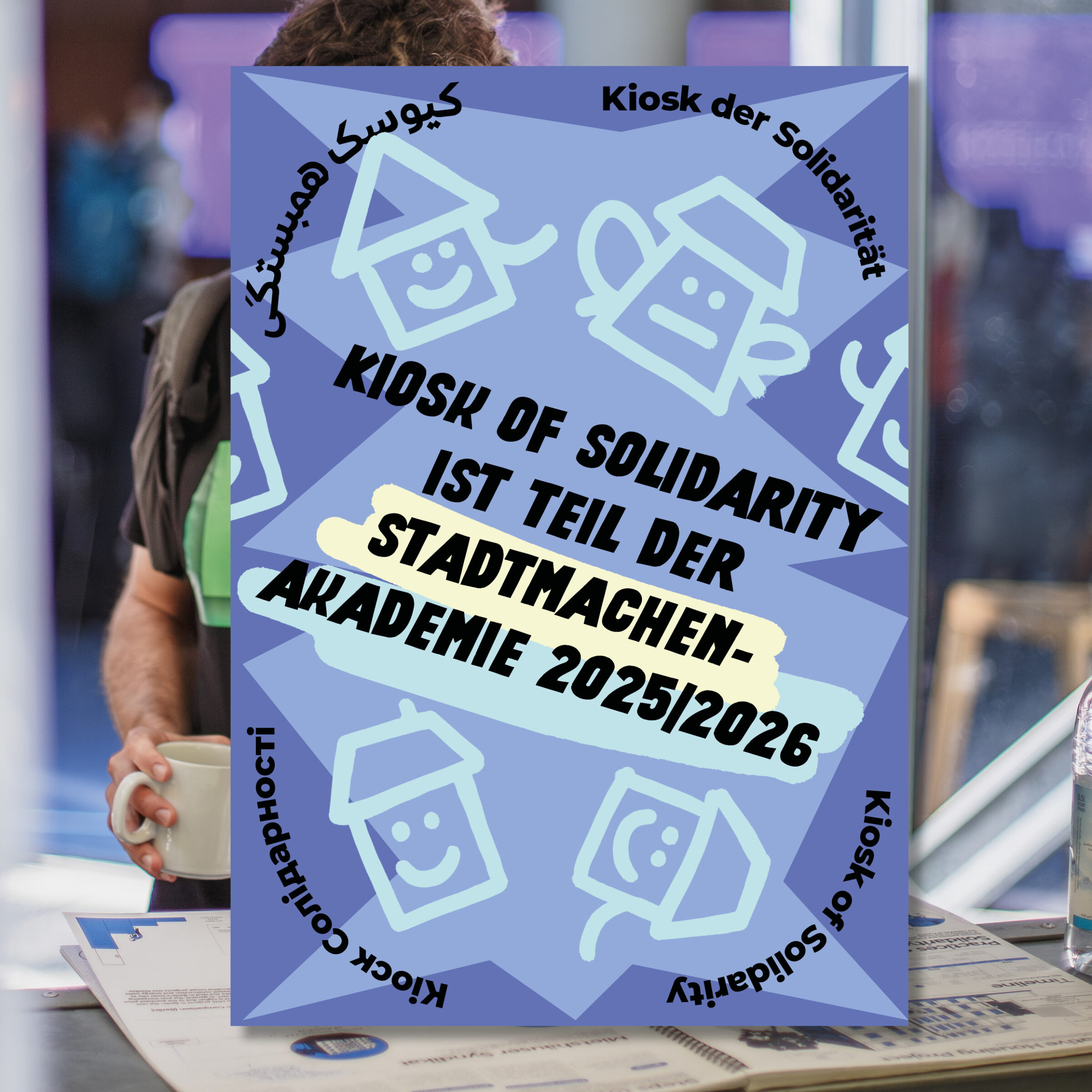 Der Kiosk der Solidarität wurde 2023 und 2024 finanziert durch den Berliner Projektfonds Urbane Praxis und 2023 ko-finanziert durch das Forschungsprojekt Transforming Solidarities (Berlin University Alliance).
