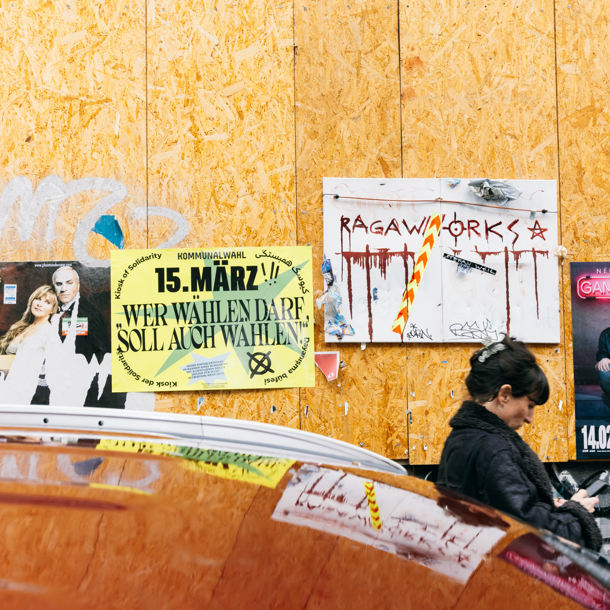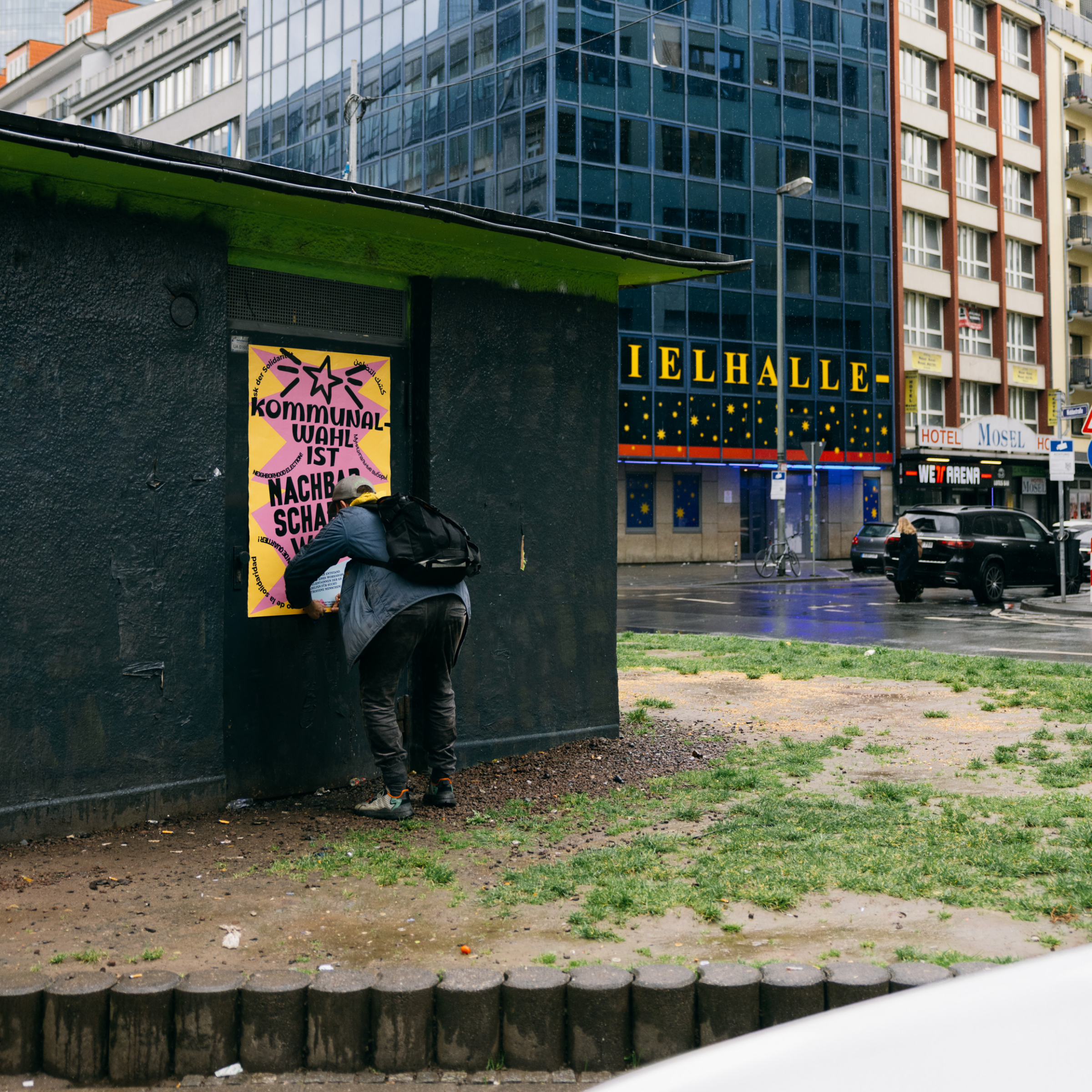 The Kiosk of Solidarity is an urban practice format that intervenes in the contested social fields of work, health, and housing in Berlin. Since 2023, over 25 solidarity-based Berlin initiatives and projects have used the kiosk for a few days at different locations in Berlin. In various formats, they bring together neighbors, fellow campaigners, and other interested parties and temporarily bring their solidarity practice into the public urban space. The kiosk creates visibility for marginalized groups (e.g. migrants, refugees, queer communities, people struggling with addiction or homelessness) and connects them with other initiatives. The kiosk project team, together with students from TU Berlin, supports the initiatives in realizing their ideas for using the kiosk: designing the posters, applying for stand permits, logistics, documentation, and financing.